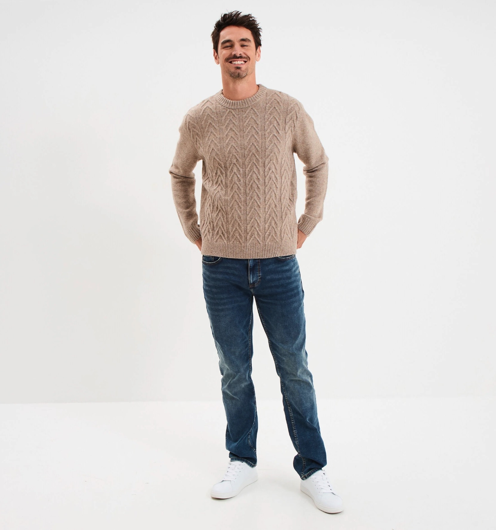 Le pull col rond beige incontournable de la saison est à seulement 10 € chez La Halle